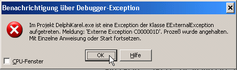 - Was bedeutet diese Fehlermeldung? - EExternalException