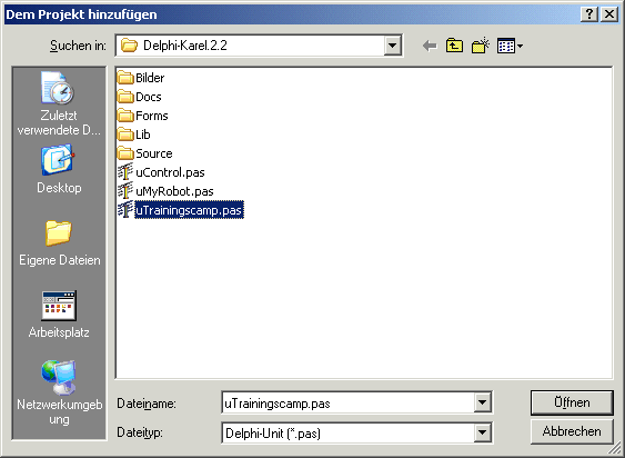 Datei-Projekt öffnen ... DelphiKarel.dpr |