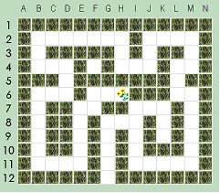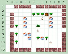 Welt Karel D. Robots Welt ist klein und übersichtlich. Sie besteht aus 12 X 14 Feldern, die gleichzeitig die Position der Objekte bestimmen. Jedes Objekt kennt seine momentane Position: z. B. weiß der Roboter, daß er auf B,2 steht. Die 'Welt' selbst hat den Überblick auf alle und weiß jederzeit,