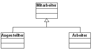 Vererbungsbeziehungen Eine prinzipielle OO-Sichtweise beschreibt das Verhältnis zwischen zwei aktiven Objekten als eine typische Client-Server Situation. Wenn ein Objekt irgendeine Aktion nicht aus dem eigenen Verhaltensrepertoire erfüllen kann, dann fordert es als Klient mit einer Botschaft von einem anderen Objekt (Server) einen Dienst oder eine Leistung an. Realisiert wird die Klient - Server Beziehung über eine der Referenzbeziehungen. Aus der Fülle der Beziehungssituationen sind folgende drei von besonderer Bedeutung: Vererbung, Aggregation und Assoziation 1. Vererbungsbeziehungen (Spezialisierung / Generalisierung)Kinder haben Eltern. Sie erben von den Eltern Eigenschaften wie Haarfarbe, Hautfarbe und auch oft Verhaltensweisen. Diese Beziehung lässt sich abbilden und ist ein besonderes, wichtiges Merkmal der OOP. Beispiel: In einem Betrieb gibt es verschiedene Arten von Mitarbeitern. Alle drei haben die gleichen Personenattribute wie Name, Vorname usw., die sich quasi überdecken. Man spricht daher auch von einer Überdeckungsbeziehung. Ein Arbeiter ist eine Art von Mitarbeiter ('IS-KIND-OF' oder 'IS-A'), der aber eine besondere Form der Lohnberechnung hat. Sie haben aber auch unterschiedliche, spezielle Attribute wie Arbeitsstunden beim Arbeiter und unterschiedliche Methoden der Gehaltsberechnung. Die Vererbungsbeziehung ist damit eine Spezialisierung vom Allgemeinen (Gemeinsamen) zum Besonderen, wie Sie auch bei der wissenschaftlichen Klassifikation angewandt wird. Betrachtet man eine Vererbungsbeziehung in der entgegengesetzten Richtung, in dem man aus verschiedenen Klassen gemeinsame Merkmale extrahiert und in eine Oberklasse auslagert, spricht man von einer Generalisierung. Eine Vererbung ist also eine Strukturbeziehung zwischen Klassen, die konstitutiv ist für alle abgeleiteten Exemplare. Programmtechnisch bedeutet das: Mitarbeiter ist die Oberklasse. Angestellter und Arbeiter sind Unterklassen (Erben) von Mitarbeiter. Arbeiter erbt alle Attribute und Methoden von TMitarbeiter (Name, Vorname, Entgelt, Zeigen usw.) und fügt Stunden und LohnBerechnen als spezielle hinzu. Da intern nur ein Verweis auf den Code in der Oberklasse benutzt wird, sind die geerbten Attribute und Methoden sofort verfügbar und werden nicht noch einmal aufgeführt. (Wenn man es doch tut, werden die geerbten 'überdeckt', d.h. außer Kraft gesetzt und es gelten dann die eigenen!) Bei der eleganten Idee der Vererbung scheint diese